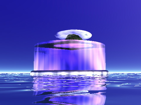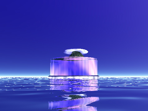 When I awakened and had pulled myself back onto the raft (damn that morning-get-going instinct) I went over everything that had happened since the first thing I could remember, which was waking up. It was at that moment - while I was pondering the meaning of the whole thing - that I realized that there was no sun in this strange place. The sky was blue and the sunlight pierced the ocean depths below me, but there was no sun. This puzzled me quite a bit and it was as I was double-checking this no-sun-theory that I noticed something that hadn't been where it no was when I first awakened. It was a very wide and quite tall pillar of water.